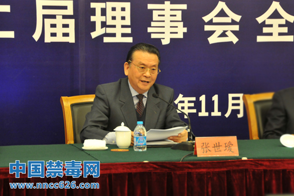中国禁毒基金会第一届理事会常务副理事长张世瑷出席会议并讲话。中国禁毒网 宫碧莹 摄