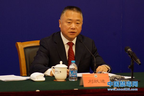 图为国家禁毒委副主任、公安部党委委员刘跃进在发布会上发言。中国禁毒网 发