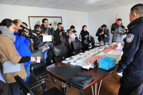 在市局宣传处的鼎力帮助下,下午,中国新闻社、中国吉林网、凤凰卫视等网络平台;吉林、长春电视台、第一播报、守望都市、城市速递等电视台;省广播电台、交通之声等广播电台、新文化报、东亚经贸新闻、城市晚报等报纸,总共十余家新闻媒体、二十余名新闻记者云集分局八楼合成作战室,对部督“2015.11.10”特大团伙贩毒案进行全方位的宣传报道。