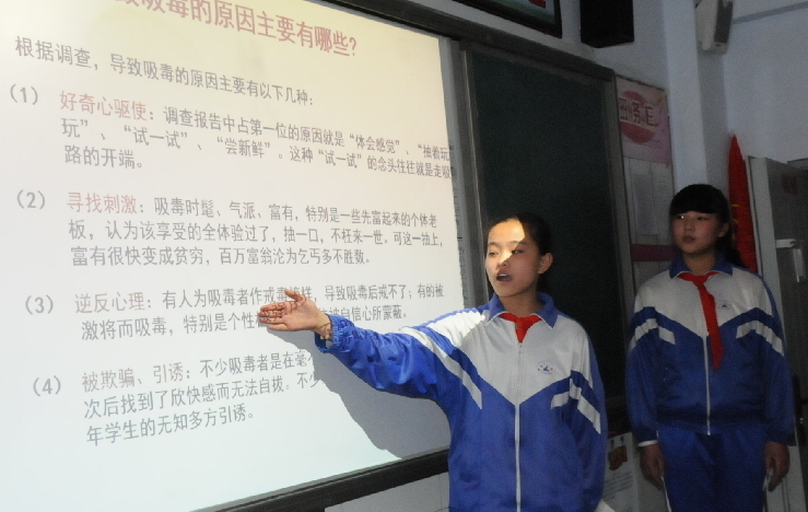 中国禁毒网讯 3月21日这天是星期一,下午第三节课,内蒙古自治区巴彦淖尔市临河区回族学校小学部、初中部的孩子们一如既往地端坐在教室里,开展每个星期一次的禁毒主题班会。有的班级由老师讲解禁毒史,有的由同学带领大家学习禁毒知识,有的开展禁毒知识抢答比赛,有的组织表演小品等禁毒主题文艺节目……走进每个班级都可以看到孩子们兴趣盎然,气氛十分活跃。