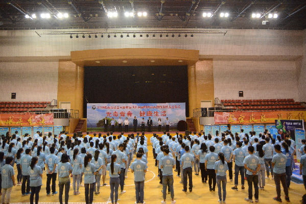 在6月3日“虎门销烟”纪念日当天,山西省禁毒办、共青团山西省委、山西省教育厅在山西大学联合举行了2016年山西省全民禁毒宣传月启动暨禁毒志愿服务队成立仪式活动。山西省青少年禁毒志愿服务总队及地市支队和高校支队共计20支支队志愿者代表、大学生代表近600人参加了活动。省禁毒委副主任、省高校工委副书记张培良,省禁毒委委员会委员、团省委副书记马皖东,省公安厅党委委员、政治部主任安占功等领导出席了活动。