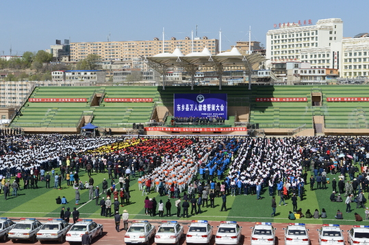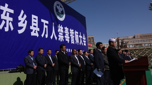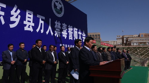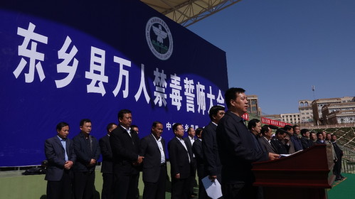 万人振臂誓铮言 众志成城铲毒患 ——甘肃临夏州东乡县举行万人禁毒誓师大会