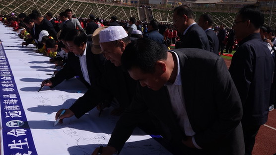 大会结束时,全体与会人员和广大群众进行了“珍爱生命,远离毒品”签名活动,并参观了禁毒宣传展板。东乡县县级干部、县直及驻东乡县各单位全体干部、各乡镇党委书记、乡镇长、禁毒办主任、综治办主任、司法所所长、派出所所长、学区区长,229个行政村党支部书记,部分人大代表、政协委员、离退休老干部、工商企业界、宗教界人士,县城各中小学全体师生、民兵预备役及广大群众约15000人参加了万人禁毒誓师大会。(通讯员康逢茂)