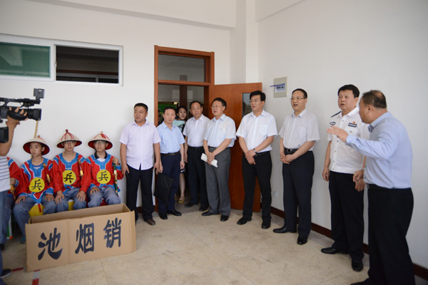 在朝阳一社区,刘杰同志观看了禁毒文艺演出,参观了社区戒毒(康复)工作站,在郝庄中学,参观了学校禁毒长廊、禁毒教育基地,观看了学生们表演的《虎门销烟》情景剧、模拟法庭教学、禁毒书画作品,聆听了禁毒公益歌曲《生命》等,并与社区、学校、派出所等基层工作人员进行了座谈,认真听取了基层工作人员就现阶段工作中存在的问题和困难以及对下一步工作的意见和建议。