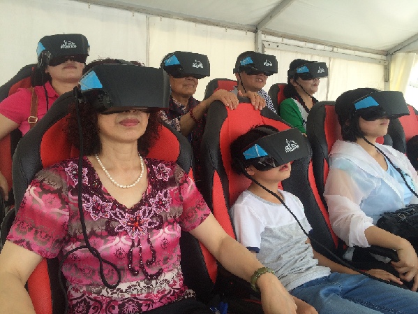 图为体验VR虚拟现实等禁毒宣传教育新技术。