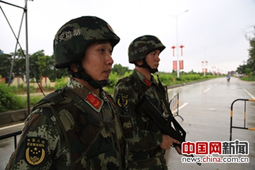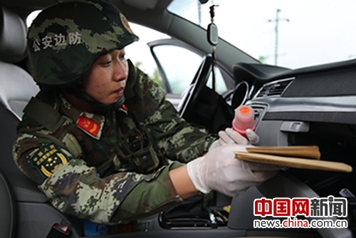 广东陆丰禁毒边防部队暴雨天查车不停歇