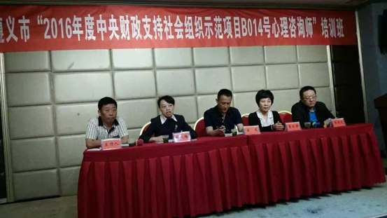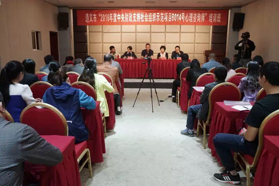 2016年5月24日,我会在贵州省遵义市举办了“因毒致孤儿童救助关爱项目”心理咨询师培训班开班仪式。中国禁毒基金会项目总监王龙,中国人民公安大学侦查学院禁毒教研室主任李文君、遵义市禁毒支队张登文队长、禁毒办副主任胡晓梅、禁毒办科长邹继初及遵义市下辖禁毒办、疾控中心、教师等30名同志参加了本次培训。胡晓梅主任对参训教师提出在培训中要遵循“讲学习、讲纪律、讲效果”的原则,学以致用,真正的起到种子的作用。