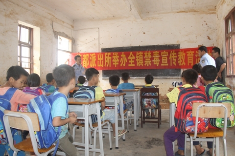 中国禁毒网讯 10月11日,封开县公安局莲都派出所深入辖区小学,走进教室开展627工程禁毒宣传活动。