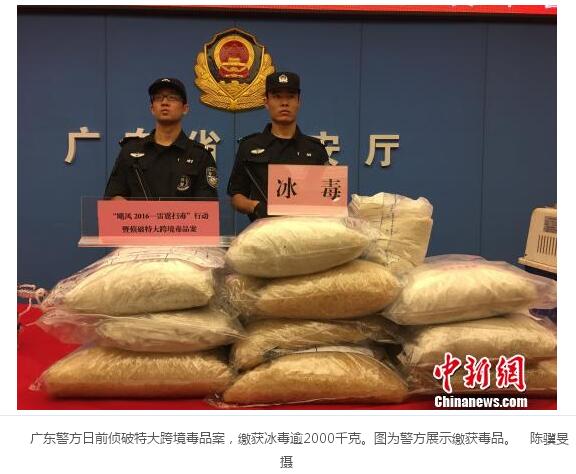 广东警方侦破特大跨境毒品案 缴获冰毒逾2000千克