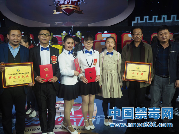 由国家禁毒委员会办公室、教育部和共青团中央联合主办、中国禁毒基金会协办的2016全国青少年禁毒知识竞赛总决赛12日落下帷幕,宁夏队获得二等奖。中国禁毒网 尹希文 摄