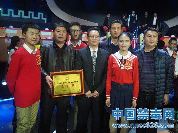 由国家禁毒委员会办公室、教育部和共青团中央联合主办、中国禁毒基金会协办的2016全国青少年禁毒知识竞赛总决赛12日落下帷幕,甘肃队获得三等奖。中国禁毒网 尹希文 摄
