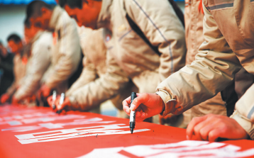 戒毒人员在横幅上签字,珍爱生命,阳光戒毒。