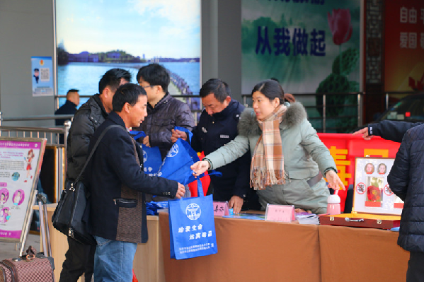 中国禁毒网讯 为强化广大人民群众的禁毒意识和拒毒能力,持续推动安徽池州市禁毒宣传工作的常态化,集中掀起全市2017年禁毒宣传教育的新高潮, 1月20日,市禁毒办会同贵池区禁毒办、团市委、市文广新局利用外出务工人员集中返乡之际,在火车站广场开展了禁毒防毒教育宣传活动,取得了良好的效果。