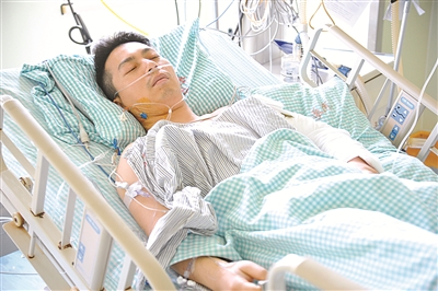 躺在病床上的胡建江。(图片由余姚公安部门提供)