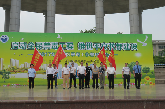 中国禁毒网讯 5月11日上午,广州市花都区禁毒委在区政府南广场隆重召开主题为“启动全民禁毒工程,推进平安花都建设”的禁毒工作誓师大会。