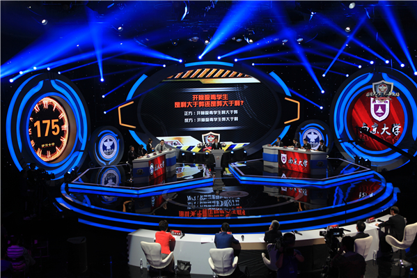 武汉大学和南京大学辩论队是本次比赛中最受关注的两支队伍,他们曾在初选赛、半决赛中对阵。当晚的冠亚军决赛是他们第三次过招,双方围绕“开除吸毒学生是利大于弊还是弊大于利”的辩题,在陈铭、肖磊两名导师的辅助和证人的参与下,上演了一场精彩绝伦的巅峰对决,双方唇枪舌战、你来我往、妙语连珠,赢得现场观众的阵阵掌声。