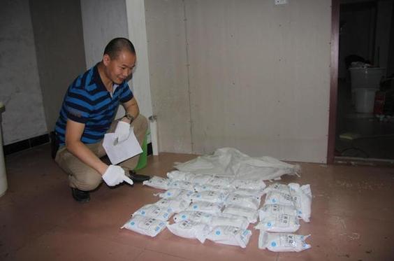 图为0703制造毒品案现场起获成品和半成品192公斤,原料290多公斤。