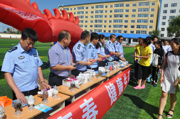 图为嫩江县公安局禁毒大队开展禁毒知识进校园活动