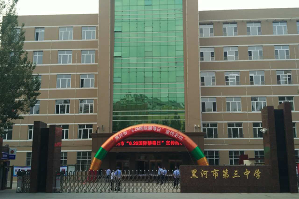 【东部黑河分会场特派见习记者朱禹柔】6月26日,黑河市禁毒委在黑河市第三中学举行“6.26”国际禁毒日宣传活动。黑河市政府党组成员、市公安局党委书记、局长、市禁毒委副主任邓福才,市公安局党委委员、副局长邱晓林,市公安局党委委员、政治部主任张旭宇,爱辉区公安局局长、区禁毒委副主任楚乃龙,市公安局党委委员、合作区公安局局长刘修忠,市、区禁毒委各成员单位主要负责同志,市区公安机关禁毒民警和禁毒志愿者代表、教师、学生共1000余人参加此次活动。