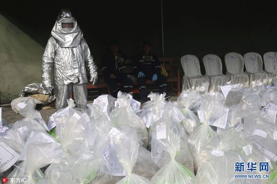 当地时间2016年10月11日,秘鲁利马,秘鲁警方对在过去4个月里查获的超过7吨毒品进行集中销毁,这些毒品包括可卡因、大麻、鸦片和海洛因。(图片来源: 东方IC)