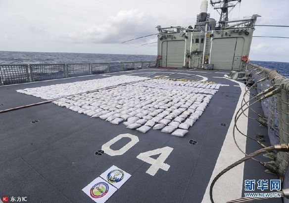 2016年6月2日报道,澳大利亚皇家海军发布图片显示工作人员在达尔文号导弹护卫舰上准备对毒品进行销毁。这批总量952公斤的毒品是由澳大利亚皇家海军在非洲海岸从3艘可疑渔船上搜捕出来的。(图片来源: 东方IC)