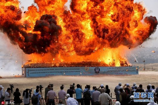 当地时间2014年6月26日,伊朗德黑兰,伊朗为纪念国际禁毒日销毁50吨毒品。(图片来源: 东方IC)