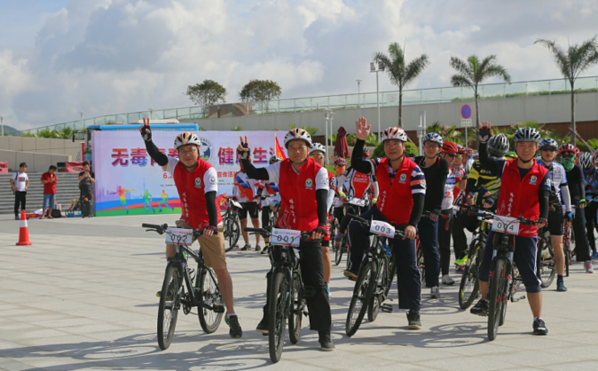 上午8点30分,60名来自社会各界的骑行爱好者和禁毒志愿者聚集在珠海歌剧院的日月贝下,共同参加以“无毒青春、健康生活”为主题的骑行活动。