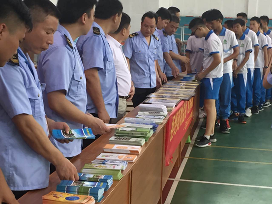 花都区食品药品监督管理局副局长吴谦围绕药物滥用的概念及原因、容易滥用的药物类别、如何防范药物滥用等内容作了开场发言。之后,工作人员向学生们分发了禁毒相关宣传资料3000余份、宣传笔1200余支,以促进师生们获取更多规范用药、识毒防毒知识。