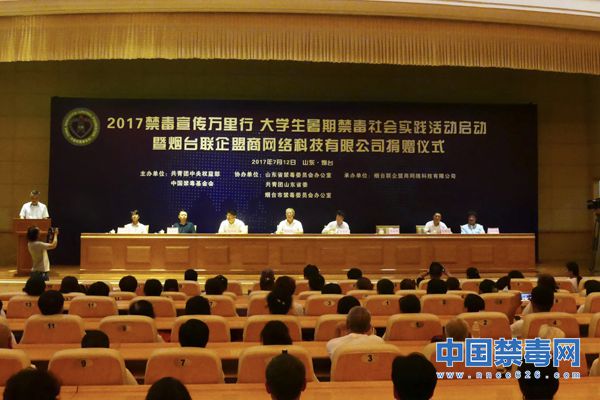 中国禁毒网烟台7月12日电(记者 宫碧莹)7月12日,由共青团中央权益部和中国禁毒基金会主办的2017年禁毒宣传万里行、大学生暑期禁毒社会实践活动启动暨烟台联企盟商网络科技有限公司捐赠仪式在山东省烟台市举行。中国禁毒基金会理事长杨凤瑞,国家禁毒办副主任、中国禁毒基金会秘书长李宪辉,共青团中央权益部法制工作处副处长王天佐,山东省禁毒办常务副主任、省公安厅禁毒总队总队长李东明,烟台市副市长、市禁毒委副主任、市公安局局长聂作坤,烟台联企盟商网络科技有限公司董事局主席王祖刚,以及烟台市500余名禁毒志愿者出席。仪式上,杨凤瑞、王天佐分别向禁毒宣传万里行队伍和大学生暑期禁毒社会实践活动代表授旗。