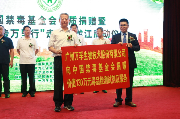 图为广州万孚生物技术股份有限公司向中国禁毒基金会捐赠毒品检测试剂及服务。