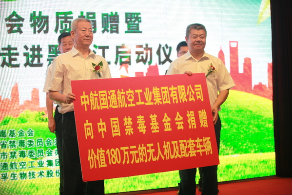 图为中航国通航空工业集团有限公司向中国禁毒基金会捐赠无人机及配套车辆。