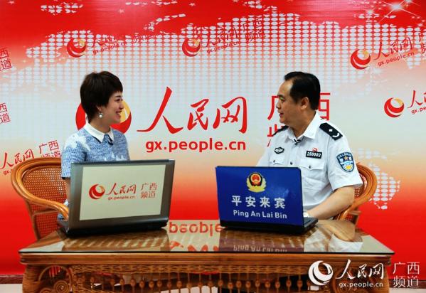 图为人民网专访来宾市公安局党委副书记、副局长李实