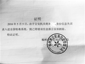 身份信息误录入 好模好样“被吸毒”
