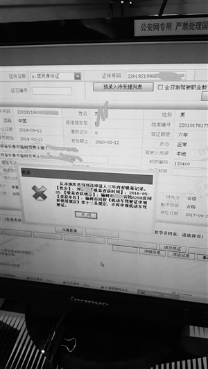 榆树的刘先生近来很郁闷,清清白白的自己却莫名背上了一条“吸毒”记录。因这条记录,住宾馆、购买机票、火车票、外出旅游都遇阻,更因此接受警察盘问,生活中他只能尽量避免使用身份证。25日,虽然已经拿到公安机关给出的清白“证明”,可是刘先生在办理驾驶证增型时再次遇阻,不良记录依然在他身上,不良记录何时背到头?这让刘先生很苦恼。
