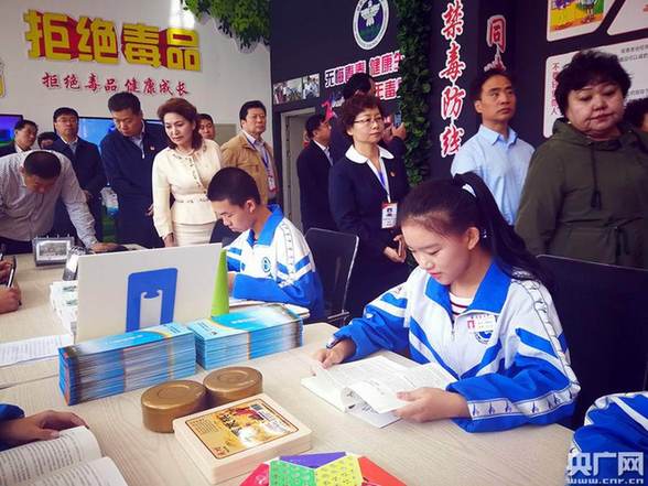 哈密市二中校园中设立的防毒禁毒书屋,实现教师、学生、家长禁毒知识知晓率达100%