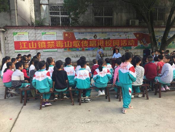 龙岩素有“山歌之乡”的美誉,山歌在这里有着广泛而深厚的群众基础,江山镇结合当地实际,寓教于乐,探索体现新时代特点、贴近群众需求、富有实际效果的途径和方法,采用群众喜闻乐见、更加易于接受的载体和形式,组织民间山歌爱好者组成3支山歌传唱小分队,将毒品的危害、涉麻制毒法律等宣传知识编成通俗易懂的龙岩山歌,利用农村传统节日、乡村学校少年宫活动日等,走进农村、走进校园,让群众、学生在传承山歌文化的同时接受宣传教育,从而达到全社会共同关注和参与的效果。