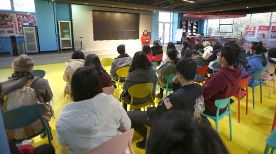 北京禁毒教育基地项目主管陈雪冰老师针对学生们当前的创作需求,结合展馆的实际情况对参观重点进行了详细讲解,并与师生共商创作计划,回答学生提出的疑点问题,指导学生完成知识答卷和“高校禁毒教育现状调查问卷”。
