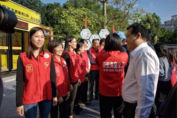 中国禁毒网讯 12月4日,深圳市宝安区新安街道海富社区禁毒阳光志愿服务U站正式举行揭牌仪式。宝安区区委书记兼区长、区禁毒委主任姚任,深圳市禁毒支队支队长、市禁毒办常务副主任邓广生,宝安区区人大主任、区禁毒办主任张志彪,区两办主任蔡英权,区政法委专职副书记鲁和利,宝安区公安分局第一副局长、区禁毒办副主任刘刚等领导出席。同时,出席仪式的还有区义工联工作人员,宝安义工代表等30余位。