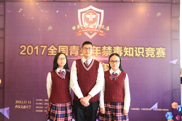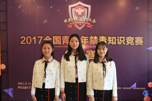 2018年1月13日至14日,由国家禁毒委员会办公室、教育部主办的2017年全国青少年禁毒知识竞赛总决赛在西安交通大学正式拉开帷幕,来自全国32支代表队的96名选手将在两天的决赛中决出大赛一、二、三等奖。图为福建省代表队选手。程浩然摄