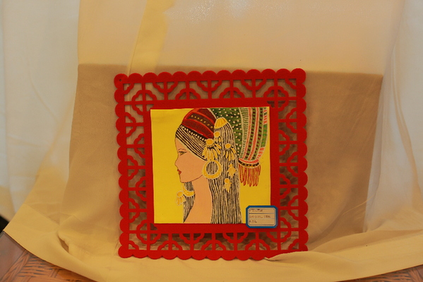 这幅民族人物挂饰是用海绵纸绘制的人物头像,加上剪纸作为衬托的装饰画,操作简单装饰性强。可以把其中的人物替换成自己喜欢的其他造型。