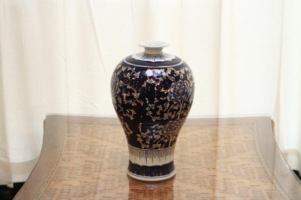 梅花瓶,产自江西省景德镇,描金工艺,该花瓶寓意平平安安。青花瓷,起源于唐宋,成熟于元代,被誉为慈国明珠,有着悠久的历史和文化内涵。青花瓷器从总体上看,釉质白里泛青,青料发色青翠,造型美观大方,装饰有古朴典雅的艺术效果,极具观赏、收藏价值。