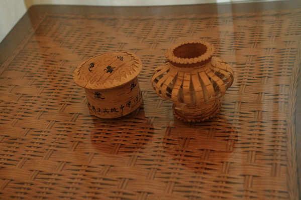 该拍品是位于大兴安岭腹地鄂伦春民族的传统手工艺品,是用白桦树皮制作的,是鄂伦春民族职业高中学生的作品,一个蒙古包,一个笔筒。白桦树素有“森林少女”之称。