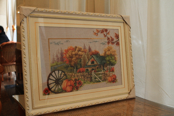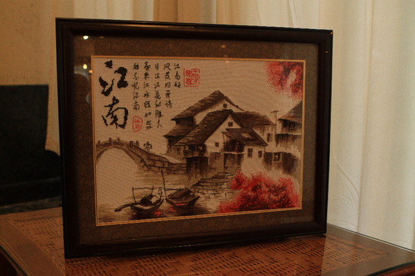 十字绣制作者为向日葵第二康复工作站康复人员黄某。在药物维持治疗期间,与其他康复人员一同学习十字绣制作,通过十字绣工作室的培训,逐渐掌握刺绣技巧,已手工刺绣多幅十字绣作品。通过社会实践活动,丰富了康复人员的业余生活,以积极的心态面对生活。