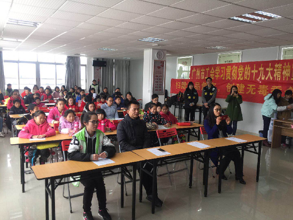 中国禁毒网讯 2018年1月30日,广州市花都区秀全街禁毒办联合家庭服务中心和志愿者在秀全街市民广场四楼,开展了第一期“拥暖羊城”冬令营动员仪式暨禁毒宣传活动,约100名青少年及其家长参与其中。秀全街党工委副书记程灿文参加了该次活动。