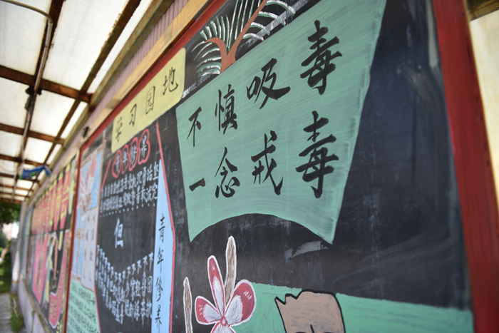 记者走出五大队,正是晌午时分,院区里的木棉花在太阳的投射下,特别娇红,零星抽新芽的枝干呈扇形叉开天空。忙碌了半天的民警们陆陆续续地用餐,时而抬头看看木棉花,享受这片无声的安静。随着太阳渐渐爬高,院区内的人影越来越少,戒毒人员们已回到宿舍就寝,院区过道边上的一排排戒毒宣传栏,似乎此刻变成最大的看点。