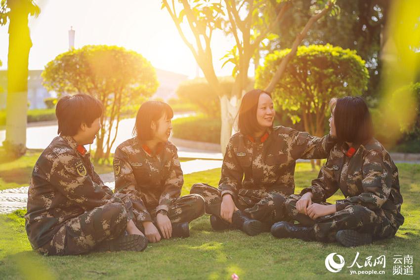 云南红河边防支队缉毒女兵在谈心交流。(庄兴 摄)