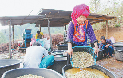 在记者的镜头前,傈僳族大姐阿萨玛有些羞涩,“家里种了1000棵咖啡树,每年每棵能收四五公斤咖啡豆,每公斤卖100泰铢(1元人民币约合5泰铢),足够家里6口人的开销了”,计算咖啡的收成时,阿萨玛露出满意的笑容。