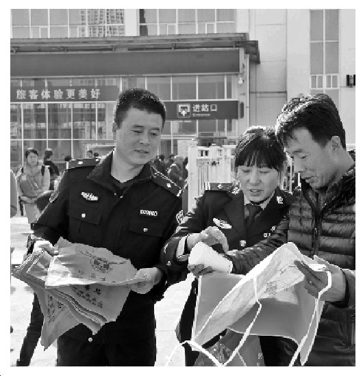 “资料大家都拿在车上好好看看,知道哪些东西碰不得!”陕西省榆林市火车站内,榆林市公安局禁毒支队教导员任彩银和同事一起,为即将乘车的旅客发放各类禁毒宣传资料,并不厌其烦地叮嘱大家注意事项。