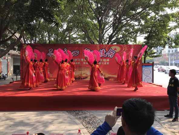 本次大赛参赛队伍人员均为40岁以上的“广场大妈”,且社区居民积极到场支持,现场气氛热烈。活动以广场舞的形式开展,在舞蹈表演中融入禁毒元素,生动诠释禁毒工作的重要性,比赛期间还穿插了禁毒应知应会知识有奖问答环节,寓教于乐,调动了群众参与禁毒工作的积极性。此外,花都区花城街禁毒专职人员向在场的居民群众派发禁毒资料,面对面讲解禁毒知识,切实增强辖区群众识毒、辨毒能力。