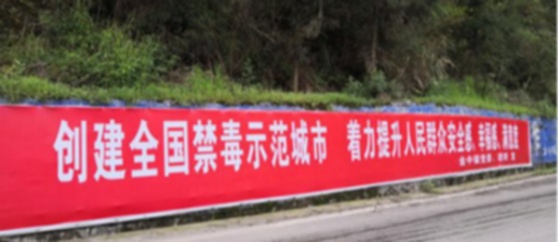 中国禁毒网讯 近日,贵州省开阳县金中镇利用创建“无毒害”及“贵阳市创建全国禁毒示范城市”等有利契机,在金高公路、金阳公路沿线广泛设立固定禁毒宣传标语,提升辖区内广大群众对禁毒及“创建”相关工作的知晓率。
